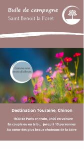 Bulle de campagne est un lieu d’hébergement recommandé par de nombreuses plateforme. Très bien noté, il est situé à Saint Benoit la forêt, au cœur des plus beaux châteaux de la Loire et du Parc Naturel Loire Anjou Touraine. Il propose des chambres et gites en confort 4 étoiles à des prix très étudiés, pour 1 nuit ou plus, pour 1 à 14 personnes.
